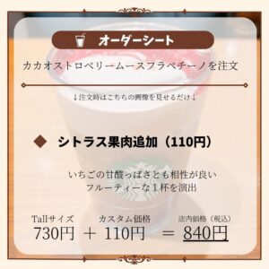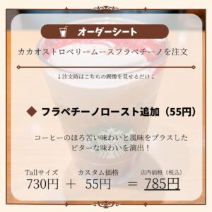 カカオストロベリームースフラペチーノは以上のようなカスタマイズが可能です。