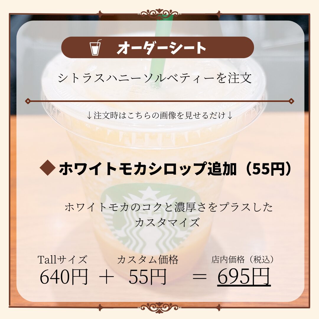 スタバ新作「シトラスハニーソルベティー」のおすすめカスタマイズは以下の通りです。