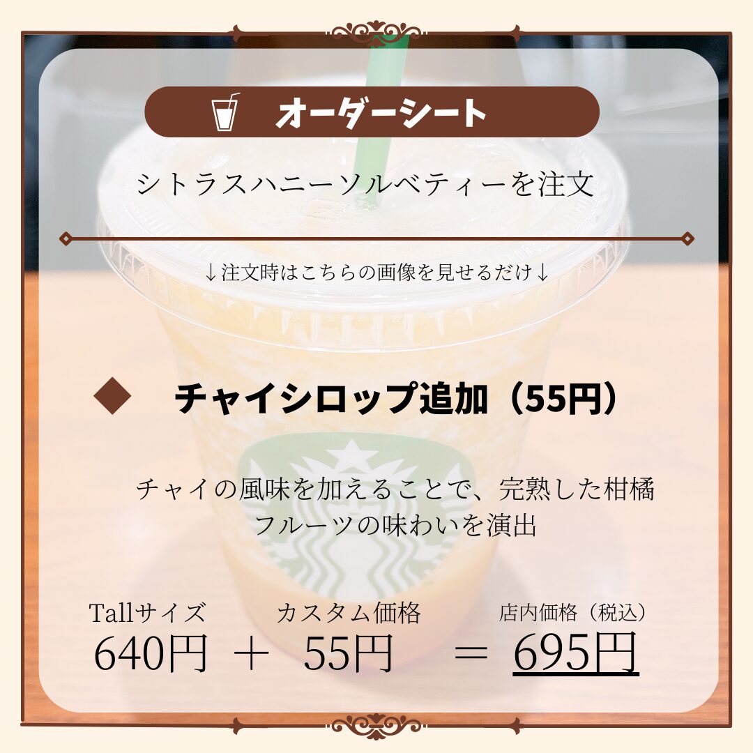 シトラスハニーソルベティーは以上のようなカスタマイズが可能です。