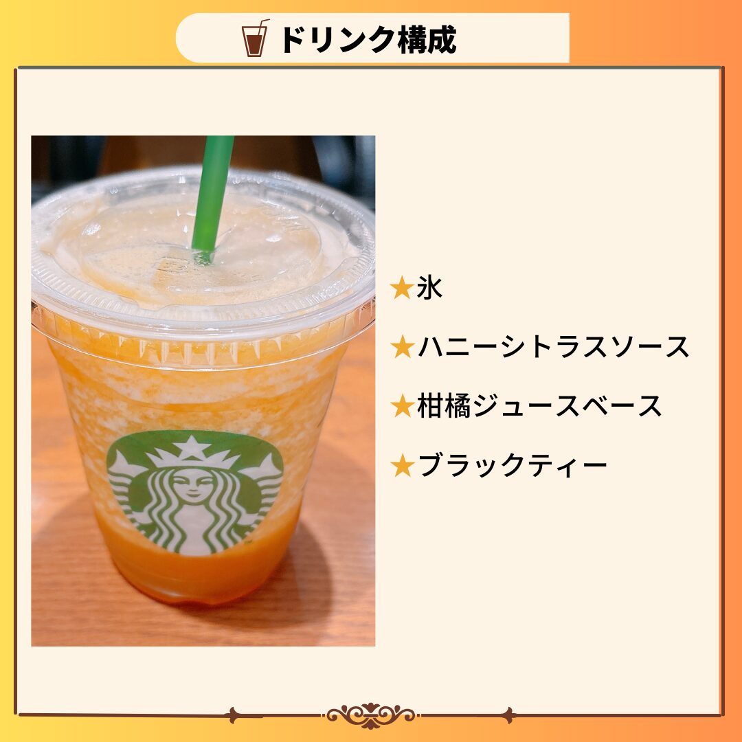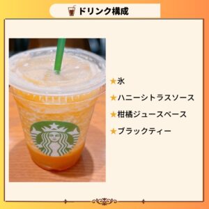 ハニーシトラスソース・柑橘ジュースベース・ブラックティーが使用されています。