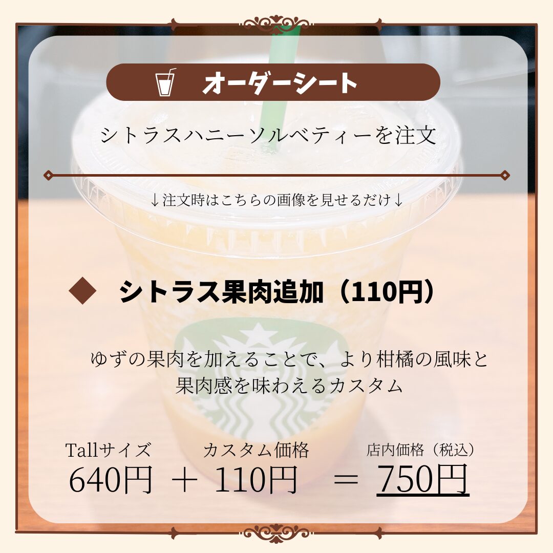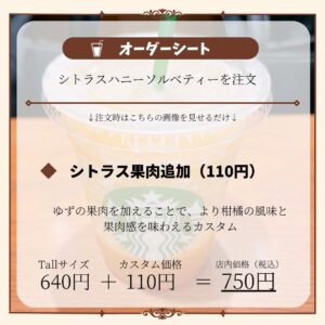 シトラスハニーソルベティーで頼めるカスタマイズ一覧