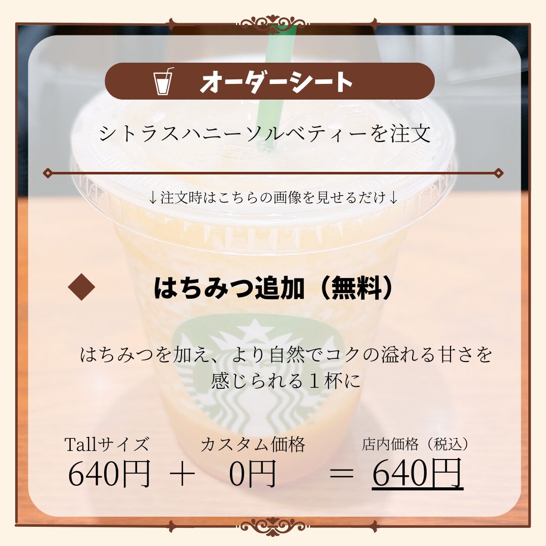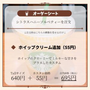 シトラスハニーソルベティーでできる無料カスタマイズは上記の通りです。