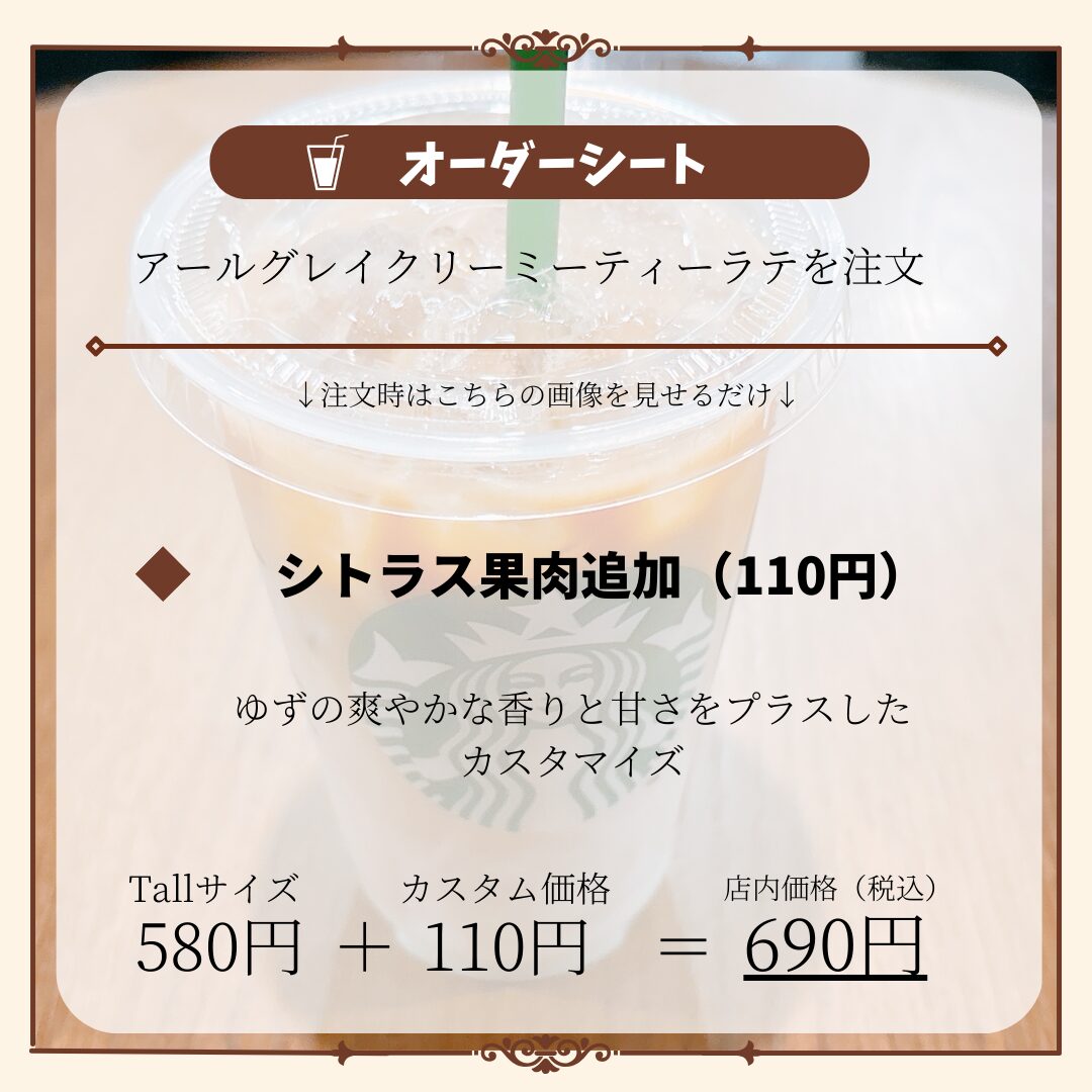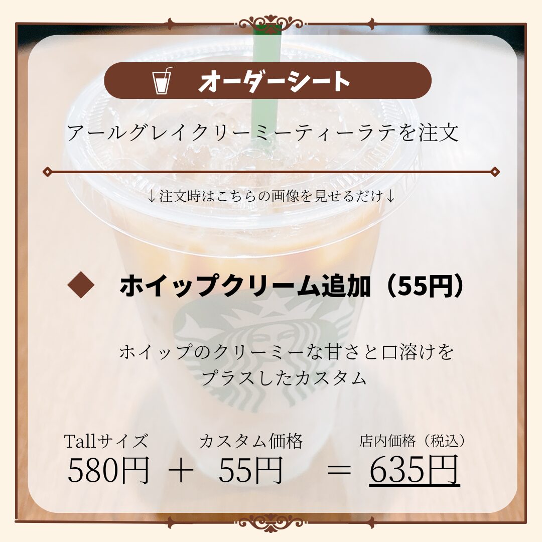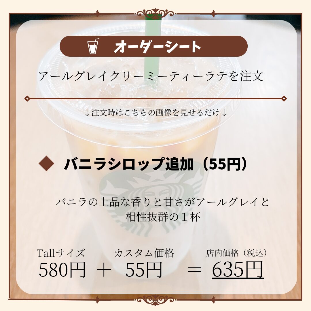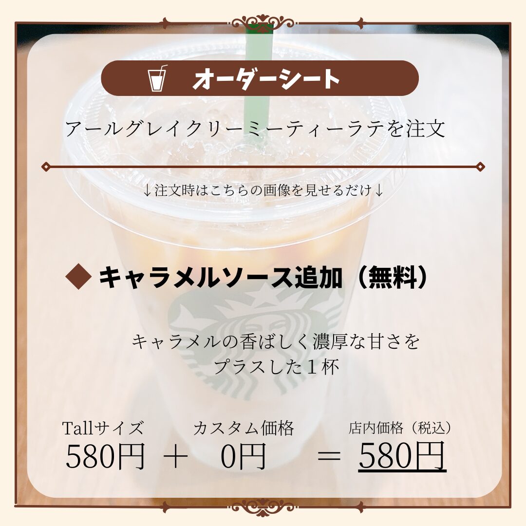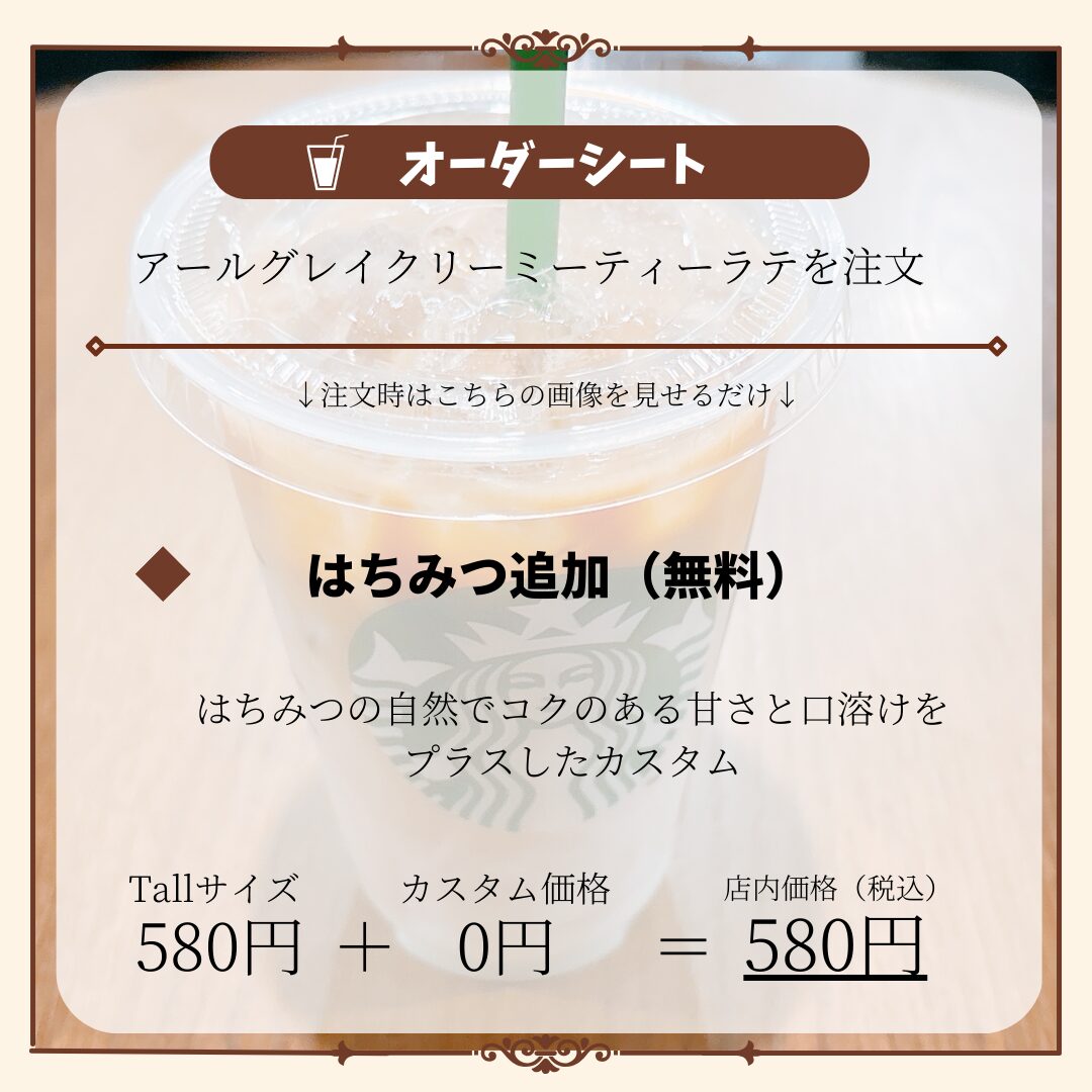 アールグレイクリーミーティーラテをもっと美味しく味わうカスタムは下記の通り。