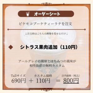 ピケモコブーケティーラテで頼めるカスタマイズ一覧