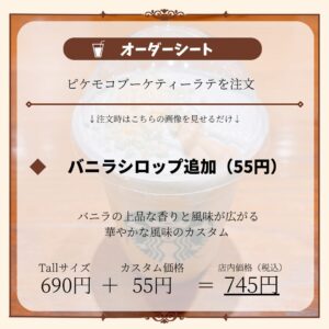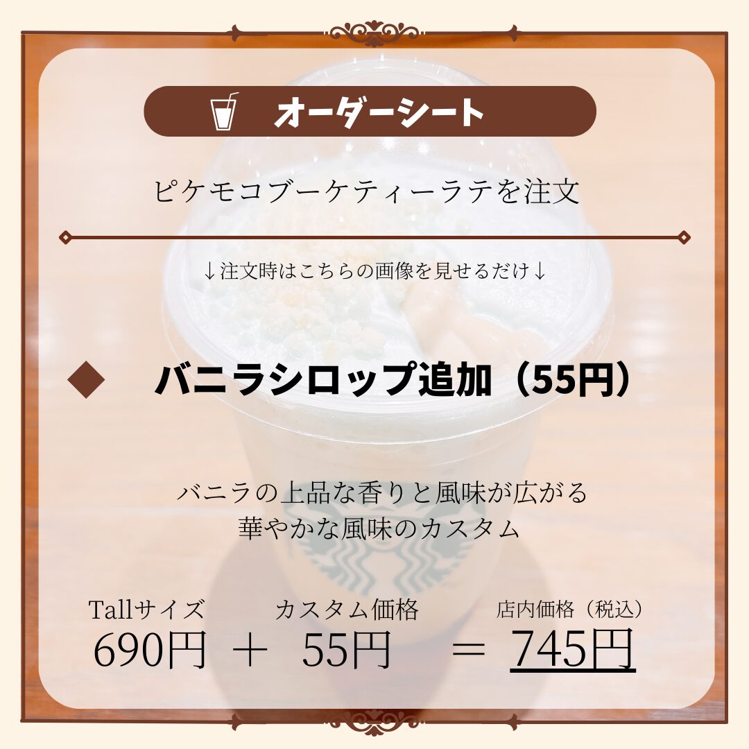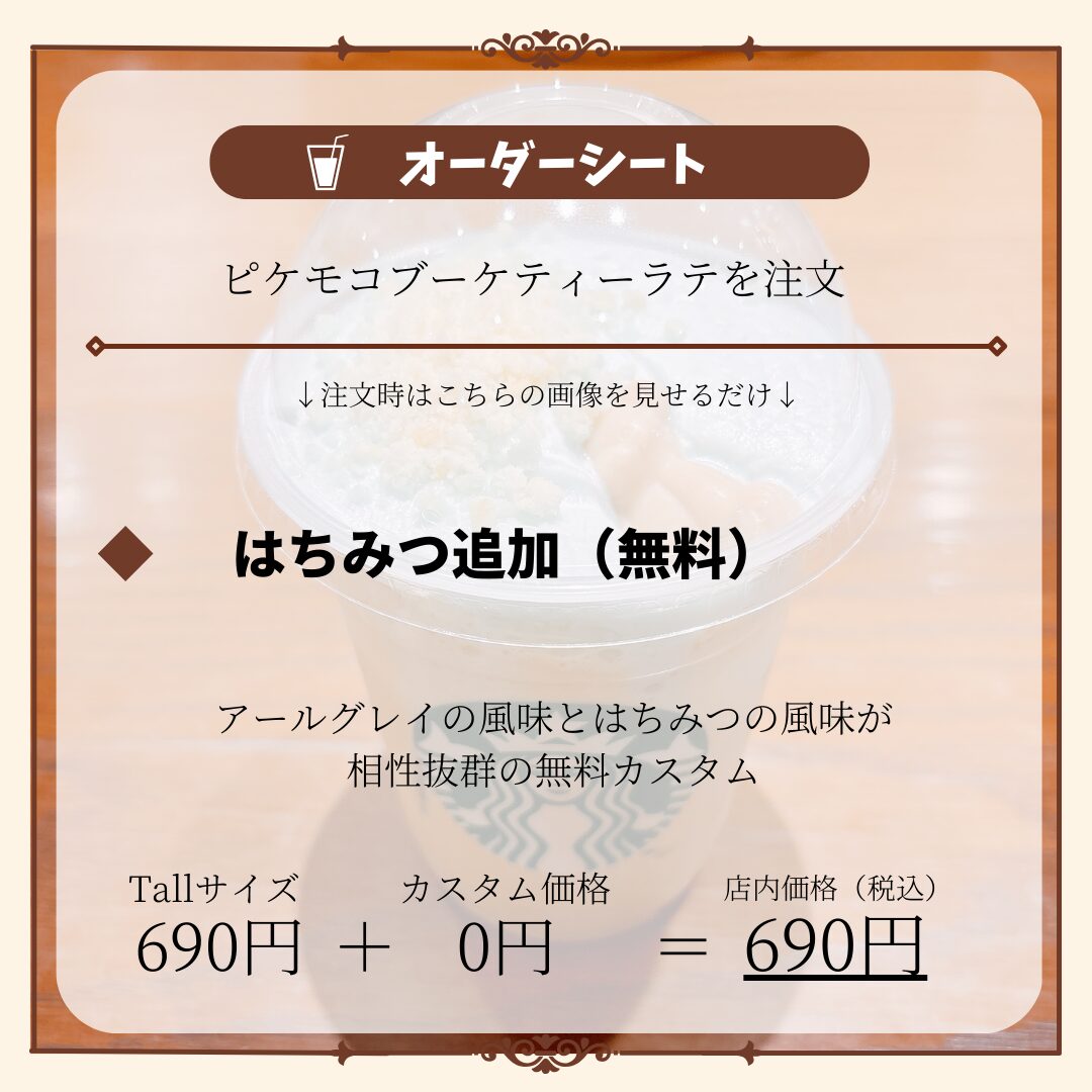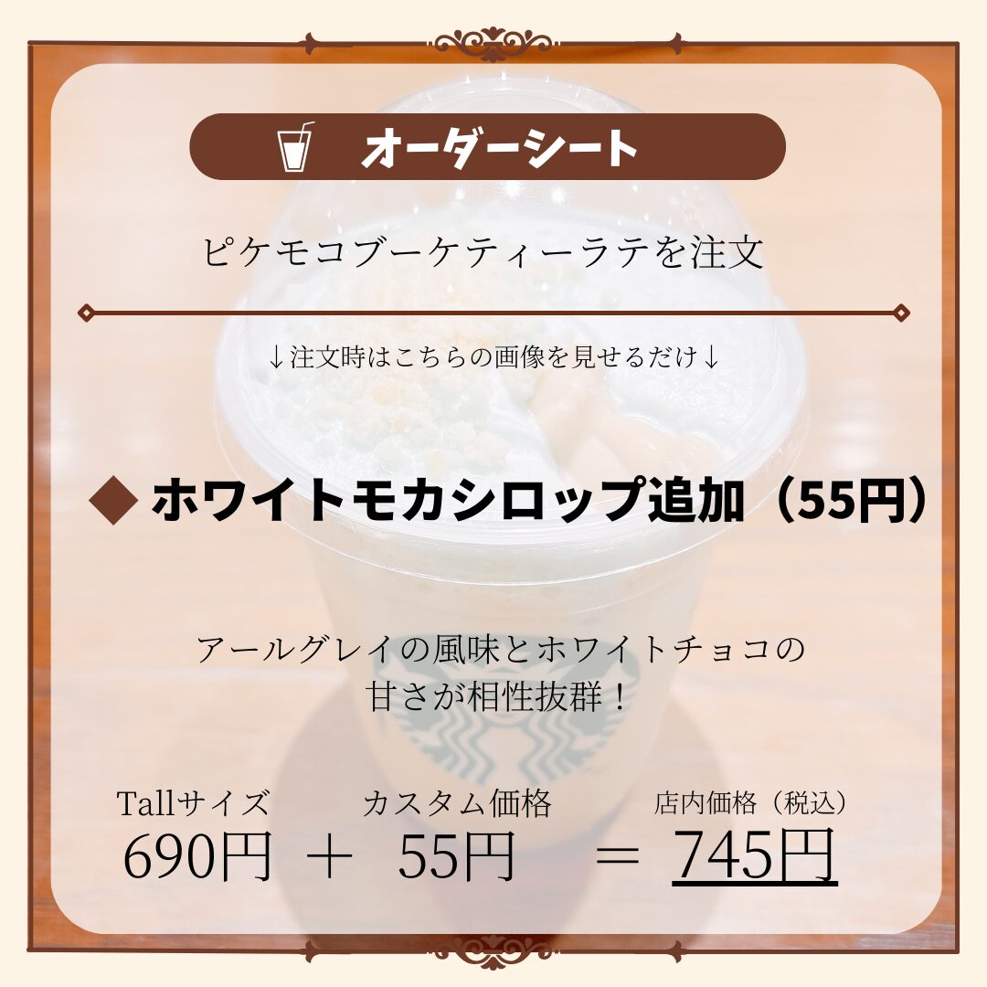 スタバ新作「ピケモコブーケティーラテ」のおすすめカスタマイズは以下の通りです。