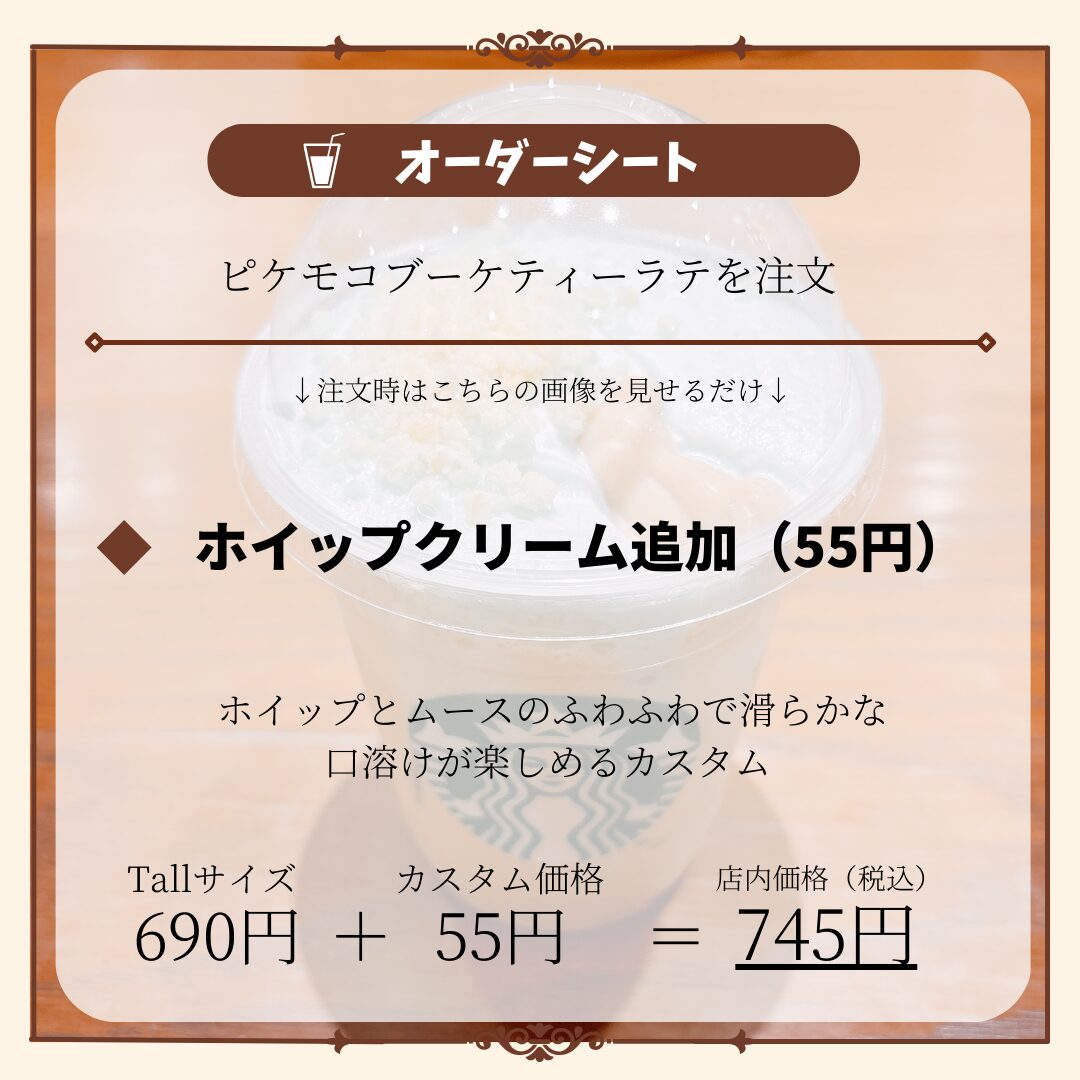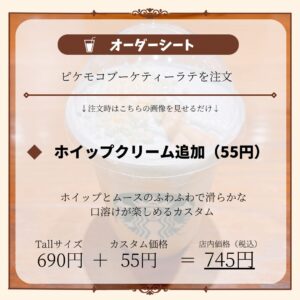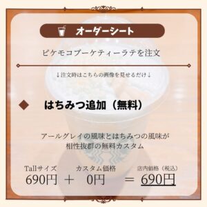 ピケモコブーケティーラテでできる無料カスタマイズは上記の通りです。
