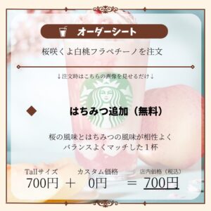 桜咲くよ白桃フラペチーノで頼めるカスタマイズ一覧