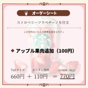 スタバ新作ストロベリーフラペチーノをさらに美味しく味わうカスタマイズは下記の通り。