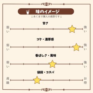 後味にホワイトチョコのコクを楽しめるスイーツ感の残る味わい