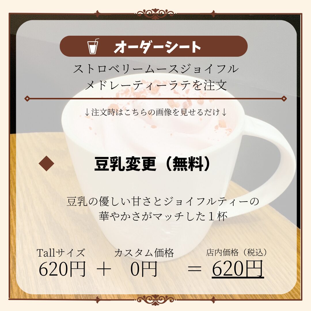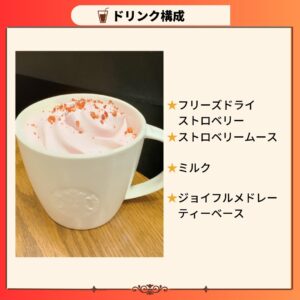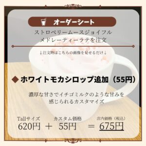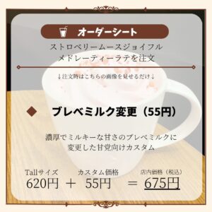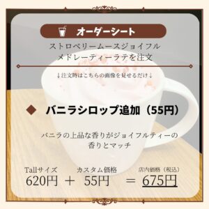 ストロベリージョイフルメドレーティーラテをもっと美味しく味わうカスタムは下記の通り。