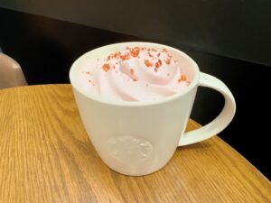 スタバのホリデー新作ストロベリームースジョイフルメドレーティーラテを飲んだ感想をレビューしていきます。